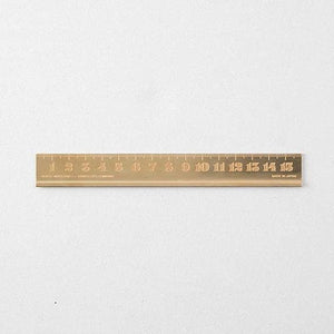 With a force of 45 tons, the brass plate is pulled out, trimmed, bent, trimmed and the memory engraved with a laser engraving to make a ruler. Draw a straight line and measure it accurately. Because the ruler is a simple tool, it requires a delicate technique Made in Japan. We raised one side a little so that it was easy to pick up and was easy to draw even with ink pens.