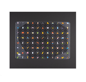 The theme for this design is “wrapping paper for your techo.” Drawn on the cover are many motifs that we often see in our day-to-day activities, from delicious food such as puddings and fried eggs to cute little things like dogs and cats, gloves, keys, steel towers, and traffic lights.