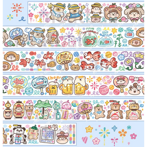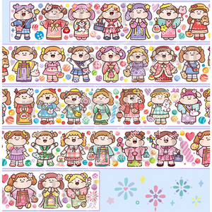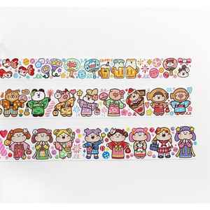 You will receive a (+/-) 45mm x 99cm/ 40mm x 99cm / 30mm x 99cm masking tape sample wrapped around a plastic card. They are made of washi, the traditional Japanese natural fiber paper.
