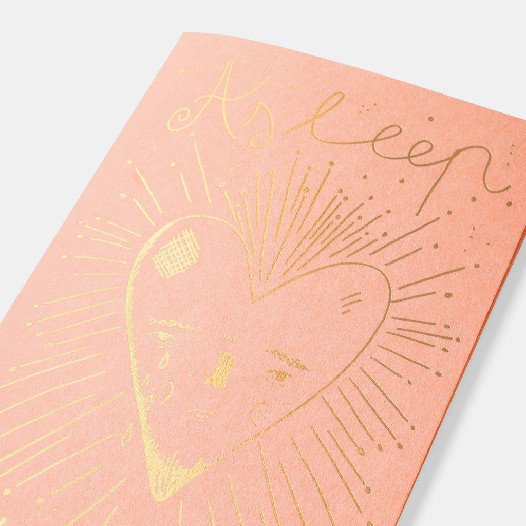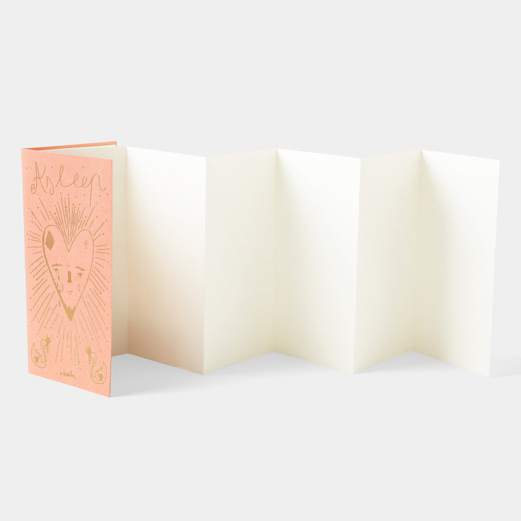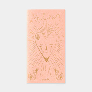The cover features Aitor's artwork in gold foil stamping on pink paper. This artwork, characteristic of Aitor, is happy yet slightly sad, and is inspired by the song "Asleep" by the British band The Smiths. The inside is made of accordion-style paper, which Aitor also uses to record ideas for his artwork. Just holding this refill will inspire you to express yourself freely and in your own way.