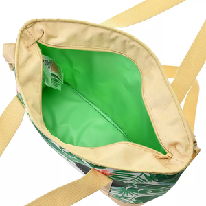 The character face has an outstanding impact! It is a fashionable design with tropical plants printed on the background. Large capacity size with plenty of gussets. Recommended for summer leisure scenes such as picnics and barbecues!