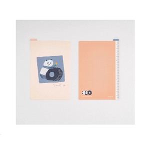 The A6 size features a panda holding a yellow flower, which acts as an accent. The front has a pink beige base, and the back is in pink, creating a gentle look. The A5 size shows pandas in various expressions as they play with their favorite tires. The base color of the front is the same pink beige as the A6 size, but the back is a calming blue gray. The Weeks size shows a panda drawn in colorful lines of red, yellow, blue and more. The front is white to bring out the colorful lines, and the back is a vibrant blue.