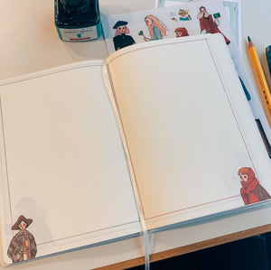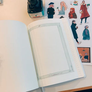 This notebook has a hard cover, and able to be opened fully 180 degrees. The papers can handle most fountain pen ink well.