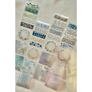 You will receive a (+/-) 50mm x 100cm masking tape sample packed in a plastic sheet. They are made of Matte PET with release paper.