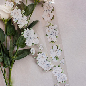 You will receive a (+/-) 50mm x 90cm masking tape sample packed in a plastic sheet. They are made of Matte PET with release paper.
