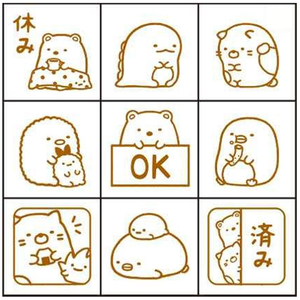 "Sumiko Gurashi Check Stamp" contains 9 mini size stamps that are perfect for personal organizers, memos, desk calendars, etc. Some of them have comments such as "OK" and "Frog", making them super easy to use! An acrylic case with a cute print makes it very convenient to carry.