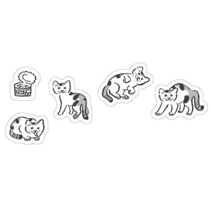 A total of 30 stickers are included, 3 large and 3 small stickers for cats in 4 different poses and canned stickers.