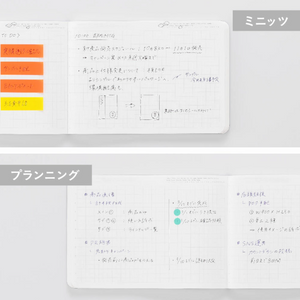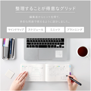 A notebook with everything you need for a wide range of uses 365 days a year. Featuring only the bare essentials of numbers to indicate the time, the date and day of the week, and a grid, this simple notebook can be used as a diary, schedule book, or sketchbook, accommodating the diverse needs of its users. Its thin paper makes it hard to believe it has 368 pages, making it compact and easy to carry. This notebook is designed to meet the diverse needs of editors, from jotting down ideas and recording interviews to managing and laying out schedules.