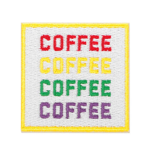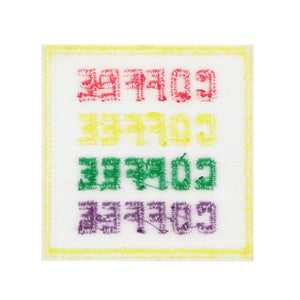 This patch features colorful, intricately embroidered letters that say "COFFEE." It comes with adhesive and can be easily attached with an iron.
