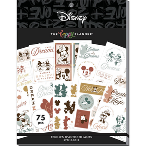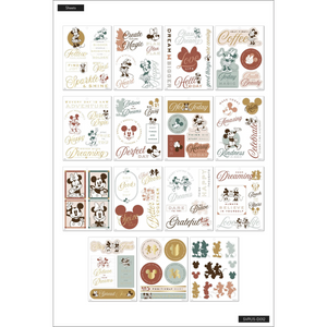 Always find your way back home. This large sticker pad features iconic sweethearts, Disney's Mickey Mouse and Minnie Mouse. Add uplifting messages to your planners, notebooks, scrapbooks, and craft projects. Celebrate with colorful designs and bold gold foil accents.