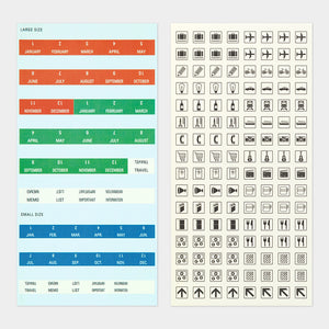 This sticker set will help you customize your Traveler's Notebook diary in a more fun way, with stickers for indexes, pockets, icons representing plans, inlays, and stickers to decorate the cover.