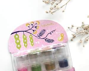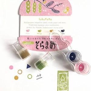 Multipurpose inkpad for fabric, wood, paper and more. Traditional Japanese color combination. The product is produced by Tomoko Tsukui, a renowned Japanese eraser stamp artist.