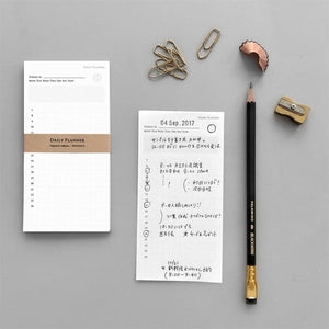 It is a schedule memo that can be peeled off one by one. For writing private detailed schedules separately from the notebook and managing special work schedules. It is one size smaller than a bill and can be stored in your wallet, so it is also recommended for shopping lists. It is a memo that you can easily use only when you need it.