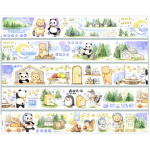 You will receive a (+/-) 5cm x 150cm masking tape sample wrapped around a plastic card. They are made of washi, the traditional Japanese natural fiber paper.