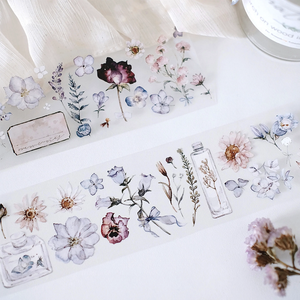 You will receive a (+/-) 50mm x 1m (77cm Loop so there will be some repeated pattern) masking tape sample wrapped around a plastic card. They are made of Matte PET with release paper.