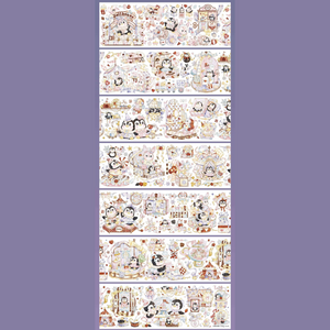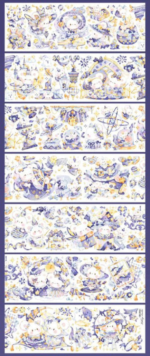 You will receive a (+/-) 70mm x 130cm masking tape sample packed in a plastic sheet. They are made of Matte PET with release paper.