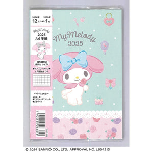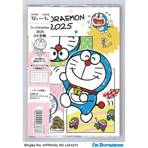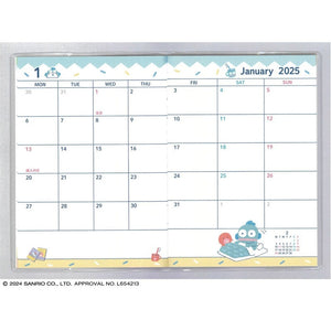 A6 size, saddle-stitched notebook with PVC cover. - 40 pages, contents include inner cover, 12-month list for 2025 and 2026, monthly pages from December 2024 to January 2026, and two memo pages. - A monthly type that starts on Monday, with a memo section under each month's calendar frame. - Comes with a PVC cover, so you can use it all year round without worrying about the cover paper getting folded.