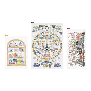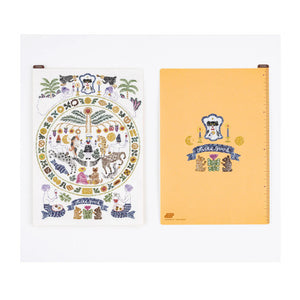 The A5 size Taste Good showcases a symmetrical world where the animals on Earth and fantastical creatures coexist. It’s like a lovely tapestry that depicts them celebrating a peaceful moment enjoying tea or a drink.