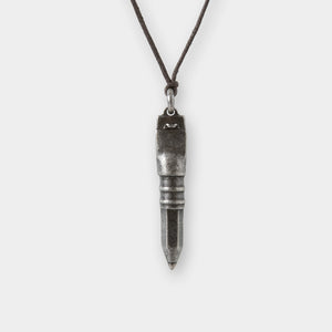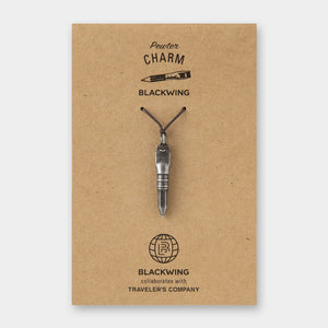It is a pewter charm with a motif of a BLACKWING pencil that has been used up to the last possible moment. It is made in Chiang Mai, Thailand, using the same material as the clasp for the Traveler's Notebook.