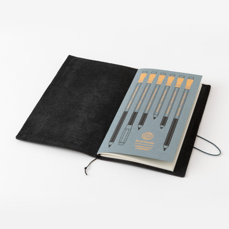 Kit includes : Cotton bag (cloth), Leather cover (made of leather), Spare rubber band, Blank Notebook refill (64 pages, MD Paper, stitched binding).