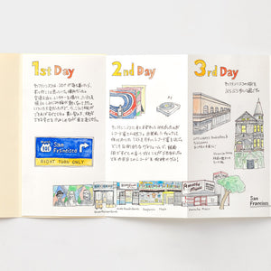 A refill of paper folded in a bellows shape. Since it uses thick paper that is also suitable for watercolors, it can be used not only for drawings and collages but also for photo albums, collected tickets, and label collection sheets. It is also recommended to use it as a travel itinerary, annual plan, or idea sheet because it can be expanded and viewed from a bird's-eye view.